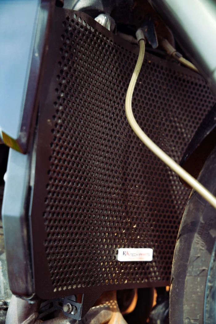 - Aircraft aluminum is highly reliable and lightweight, used in the radiator protector to meet race specifications.